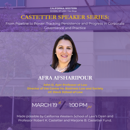 As part of the Castetter Speaker Series, Afra Afsharipour, John D. Ayer Professor of Law and Director of the Center for Business Law and Society at UC Davis School of Law, will present “From Pipeline to Power: Tracking Persistence and Progress in Corporate Governance and Practice.” Nationally renowned as an expert in corporate governance and gender equity in corporate leadership, Professor Afsharipour will discuss current progress and continuing structural challenges to achieving gender equity in American boardrooms and C-Suites, as well as among their advisors.